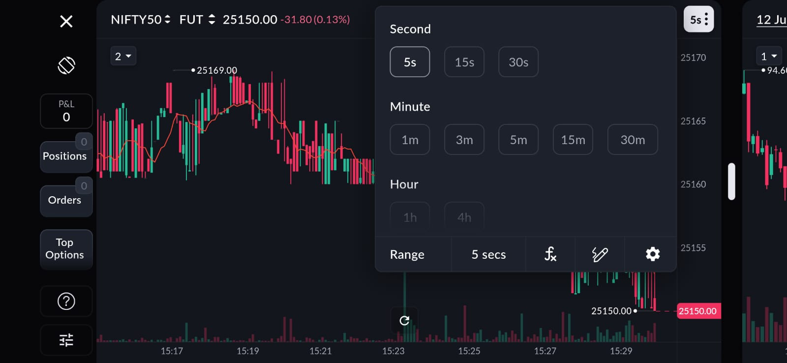 Seconds Chart for Index Futures
