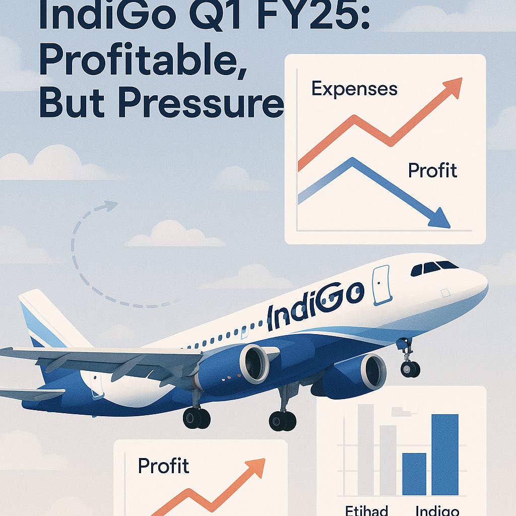 IndiGo’s Q1 FY25 results show a carrier still leading India’s skies in scale and traffic, but one navigating headwinds on the profitability front. Its domestic dominance (64.4% market share) and growing passenger base (up 10.15% YoY) provide strong fundamentals, but rising costs and operational disruptions suggest near-term margin compression.