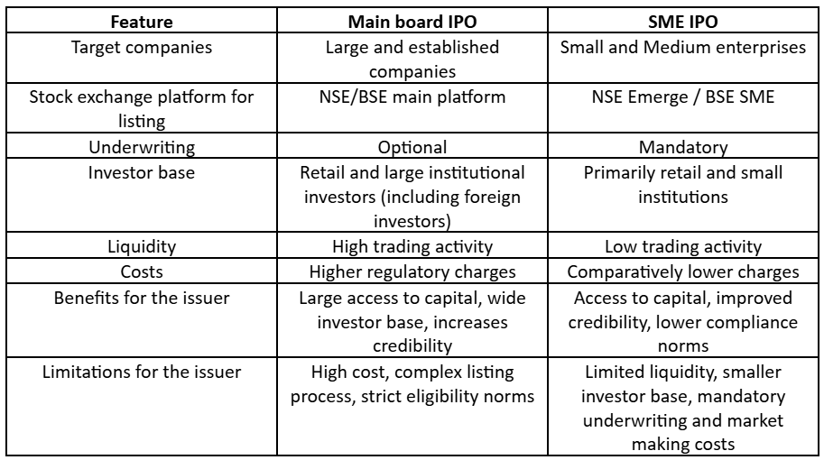 Besides their eligibility criteria, capital, profit and other things, here are some key differences in the nature of the two IPOs:
