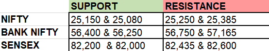 The market remains range-bound, with 25,080 acting as a crucial support to maintain the bullish bias. A decisive breakout on either side of this range could set the tone for the next directional move.