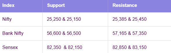 This rally wasn’t just about momentum; it was about breadth. Buying was broad-based across sectors, reflecting renewed risk appetite and confidence in the market’s near-term outlook. From Financials to FMCG and Realty, most indices participated in the up-move. For the week so far, the Nifty has shown remarkable resilience, comfortably holding above key support levels and now eyeing resistance zones at 25,385 and 25,500, which could define the next leg of the rally.