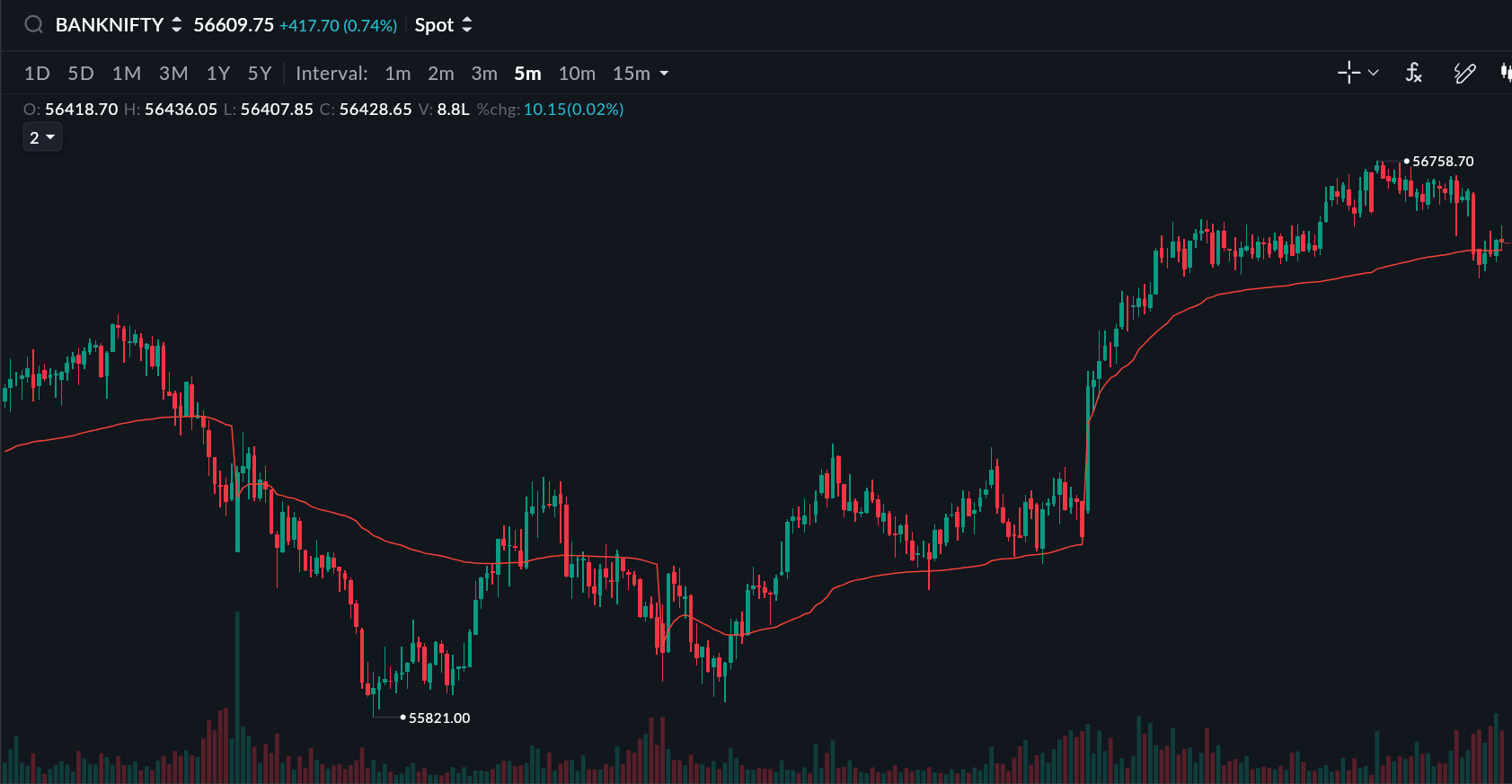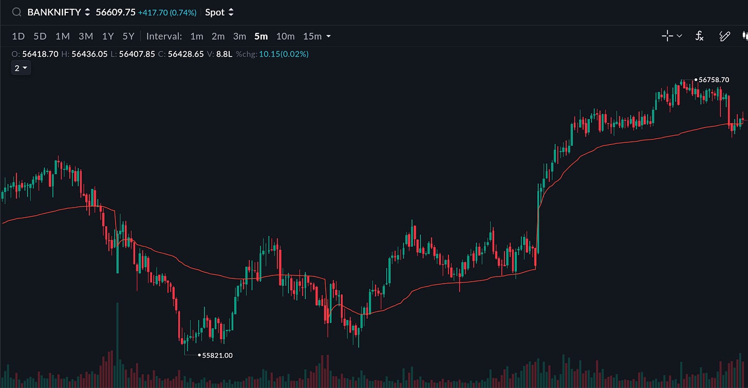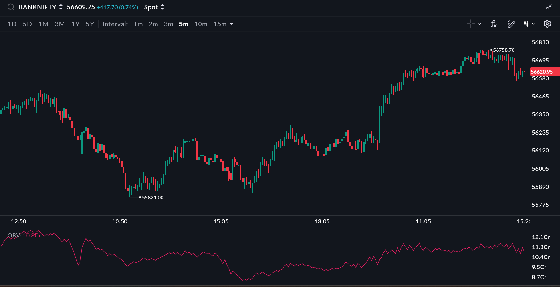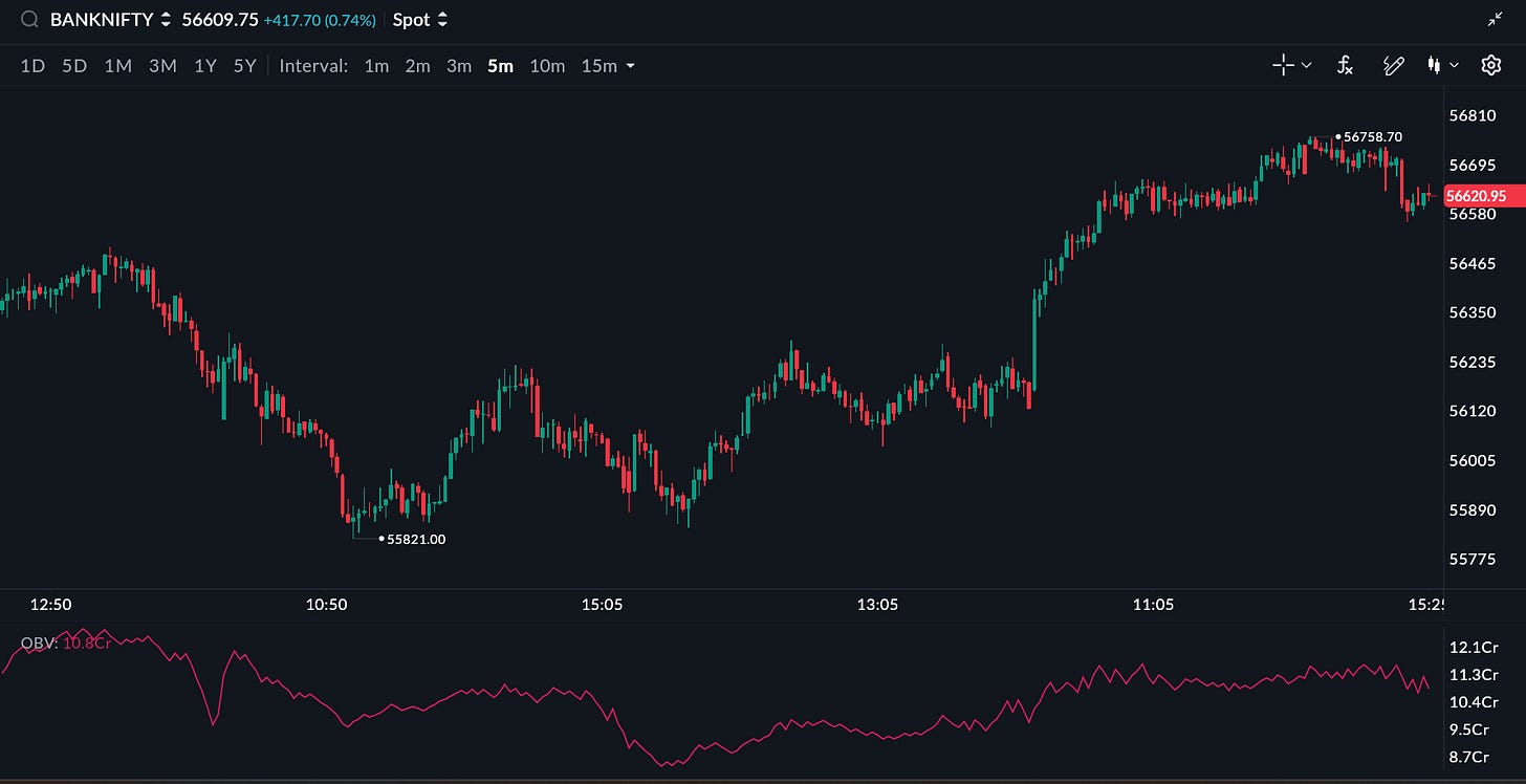 Volume: Measures total traded quantity for the index in real time. It reflects participation strength.Rising volume confirms active buying or selling, while low volume suggests lack of conviction.