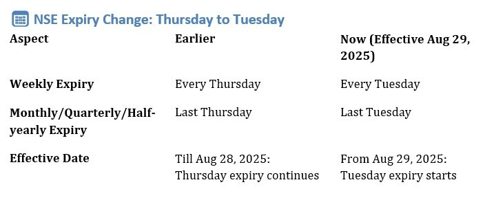 Yes, you read that right, the expiry, which has always been on Thursday, will now shift to Tuesday from August 29,2025.