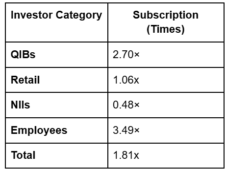 The grey market premium (GMP) near ₹8 suggests the stock may list around ₹116–₹118, pointing to a steady premium without excess speculation. The sentiment is constructive, supported by PW’s brand strength and clear financial visibility.