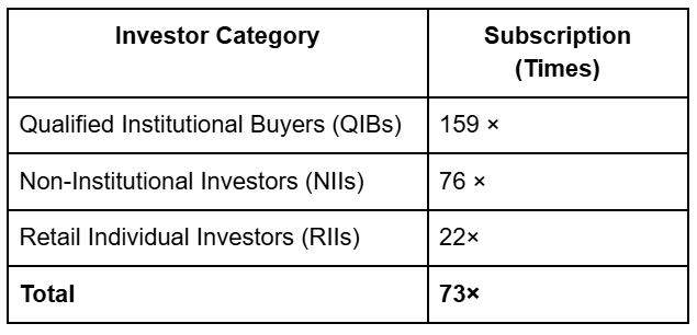 The issue saw strong investor participation, supported by an anchor book worth ₹136.65 crore (23.36 lakh shares), with anchor lock-ins ending on December 3, 2025 (50%), and February 1, 2026 (remaining 50%).